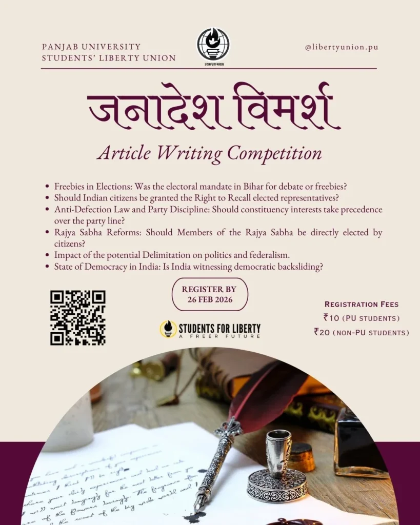 जनादेश विमर्श – Article Writing Competition | Organized by the Panjab University Students’ Liberty Union | Register by 26 February 2026