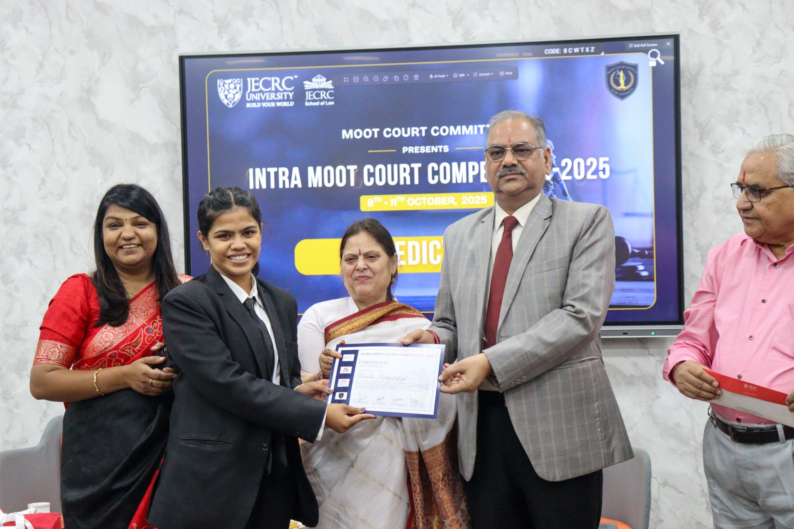 LawFoyer proudly celebrates the outstanding achievement of Ms. Khushi Vijayvargiya, a passionate BALLB (Hons.) student at JECRC University, Jaipur, who emerged as the Winner of