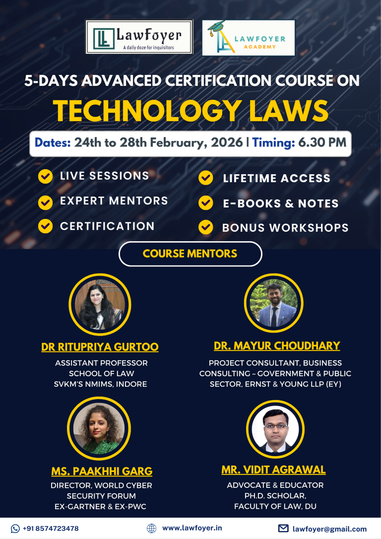 Presenting LawFoyer’s Advanced 5 Day Certification Course on Technology Laws