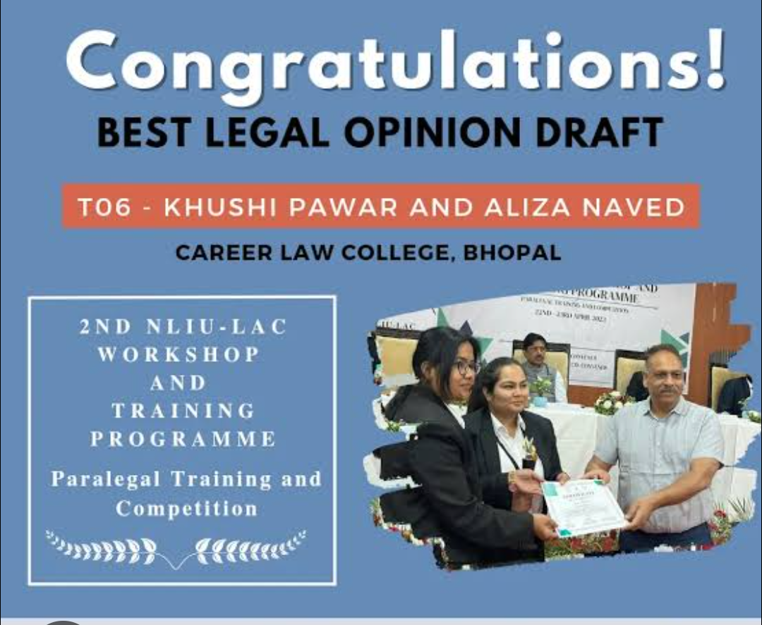 In an inspiring display of determination and excellence, Aliza Naved, a 2024 graduate from Career College of Law, Bhopal, along with her teammate Khushi Pawar,