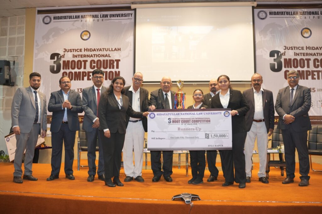 Hidayatullah National Law University (HNLU), Raipur, successfully concluded the 3rd Justice Hidayatullah International Moot Court Competition (HIMCC) 2026, held from 13–15 March 2026, reaffirming its position as one of the premier mooting platforms in the country. The competition brought together leading law schools from across India and abroad for three days of intense legal advocacy, research, and courtroom simulation.