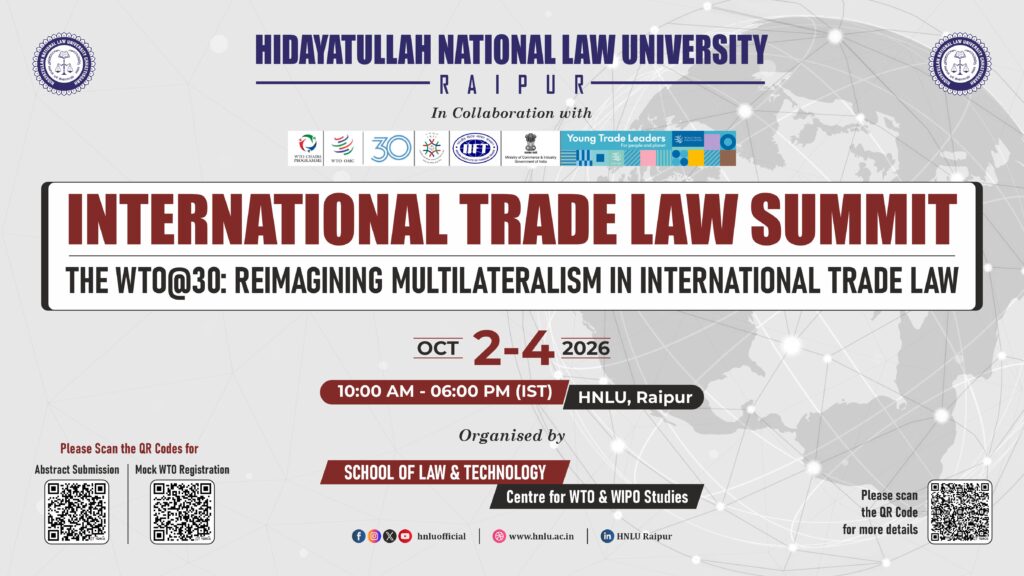 The International Trade Law Summit 2026 is being organised from 2 – 4 October 2026 in offline mode to commemorate the 30th Anniversary of the WTO.