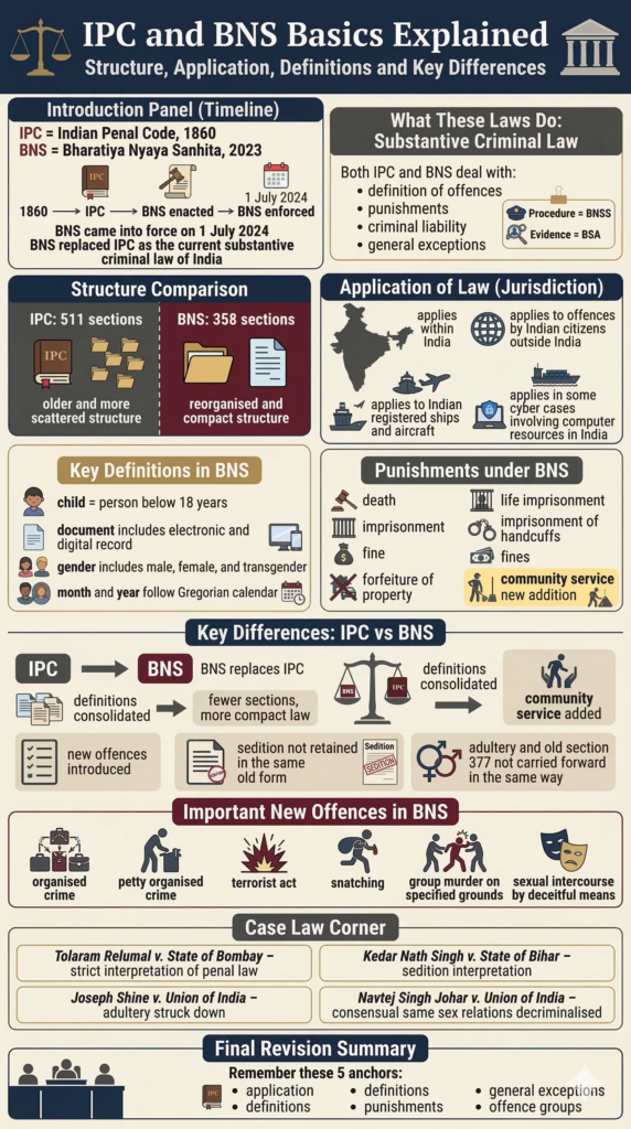 IPC and BNS Basics Explained: Structure, Application, Definitions and Key Differences