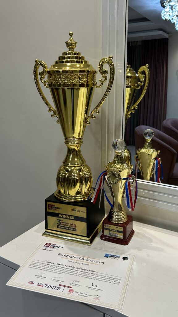 Saumya’s personal reflection on this achievement offers a heartfelt message to aspiring law students. For her, this victory is more than a trophy. It is a reminder of the power of persistence. She shares that the experience at CGC’s moot court competition tested every skill they had including research ability, composure, communication and confidence. It also provided the space to grow beyond comfort zones and understand the importance of collaboration. Saumya believes that perfection should never be the goal. Instead, progress should be valued. Every draft, every argument, every mistake plays an essential role in shaping one’s journey of becoming an advocate.