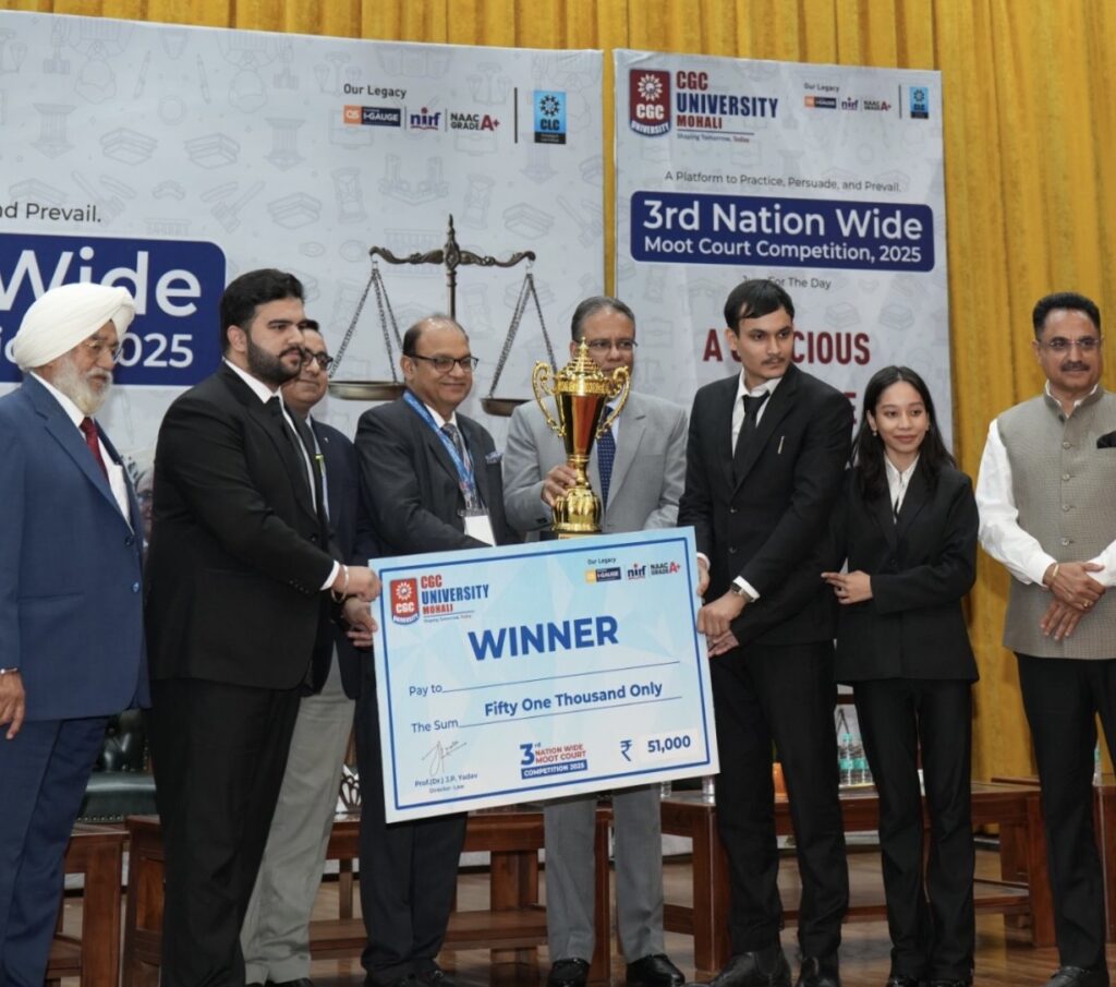 The journey of every young legal mind is filled with moments that define their dedication, sharpen their skills, and set them apart as future leaders of the legal fraternity. One such inspiring milestone has been achieved by Saumya Arora, a passionate and hardworking fourth year BALLB (Hons.) student from Amity University, Mohali. Saumya, along with her team members, has secured the Winner’s title at the CGC 3rd Nation-Wide Moot Court Competition 2025, a national level event hosted by CGC Mohali that brought together talented law students from across the country.