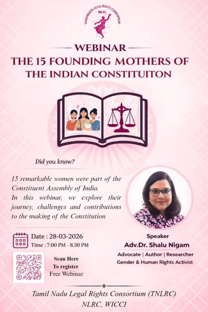 Webinar on “The 15 Founding Mothers of the Constitution” | Organized by Tamil Nadu Legal Rights Consortium (TNLRC) | Register by 27 March 2026 at 11:59 PM